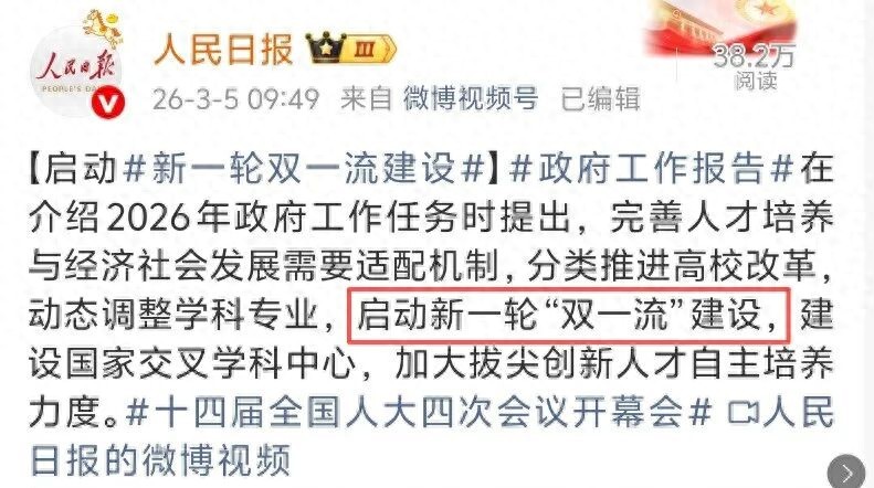日前,东谈主民日报发布的关连音问袒露,2026年,第三轮双一流高校建设还是全面入手。