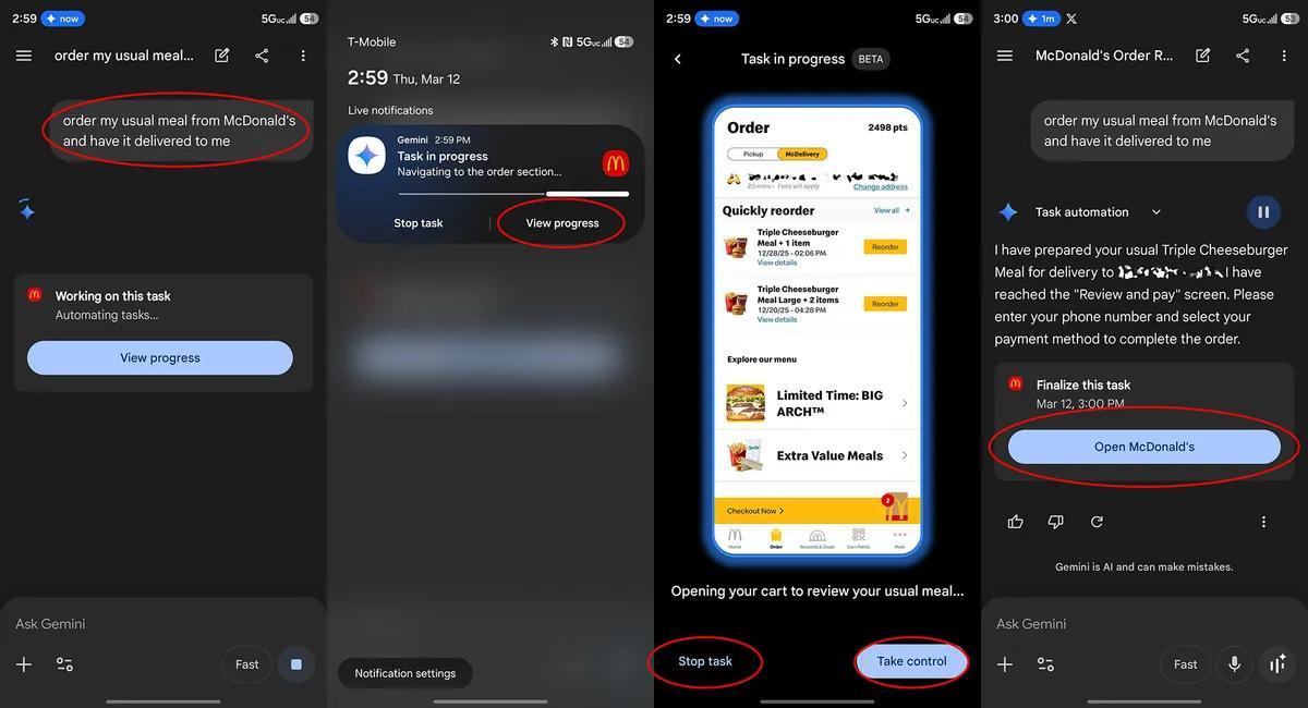 只看功能名义,Gemini 的「屏幕自动化」很容易被主张为另一种「豆包手机助手」。它相似不错替你点外卖、叫车、下单,看起来也像一个能替东说念主操作手机的 AI 代理。