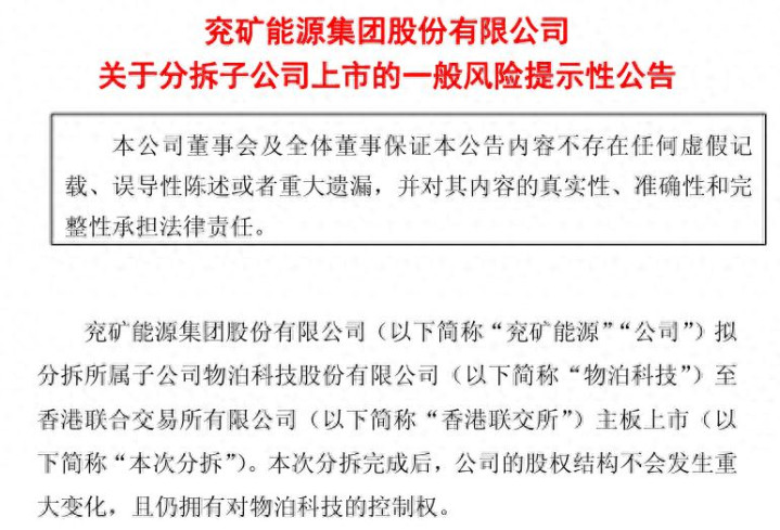 3月27日,兖矿动力(证券代码:600188)发布公告称,拟将其控股子公司物泊科技股份有限公司(简称“物泊科技”)分拆至港交所上市。这次分拆完成后,公司的股权结构不会发生紧要变化,且仍领有对物泊科技的适度权。