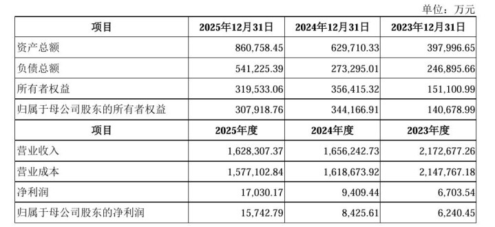 财务数据泄漏,2023年、2024年及2025年,物泊科技辞别终了生意收入217.27亿元、165.62亿元及162.83亿元,营收逐年下落,归母净利润辞别为6240.45万元、8425.61万元以及1.57亿元,呈逐年高潮趋势。