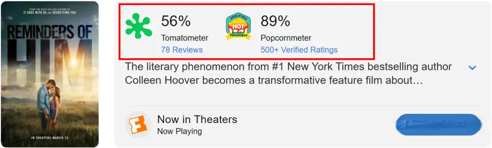 烂番茄崭新度仅56%,与《爱情到此为止》握平,媒体评价一般;但爆米花指数高达89%,略高于后者,证明不雅众买账流程可以。