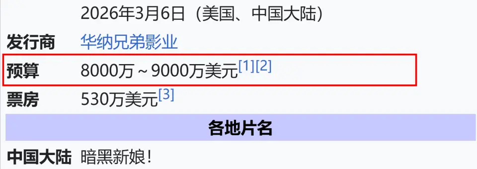 《暗黑新娘》制作老本高达8000万好意思元,后续补拍花了1000万至2000万好意思元。另外,大众宣发用度为6500万好意思元,加起来,总老本约为1.5亿好意思元。