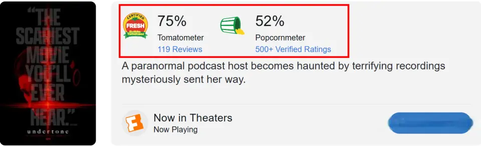 《暗潮低语》的口碑发扬一般,烂番茄崭新度75%,爆米花仅52%,CinemaScore评分为C,影评东说念主盛赞这是一部私有的视传闻话电影,可莫得爆米花该若何是好?