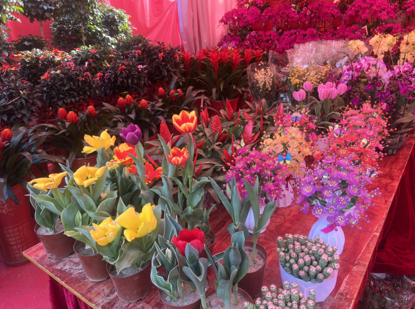 新春花市中各色年花缤纷王人聚,似锦似锦。逛花市、赏鲜花、选年礼,在盎然春意里感受侵扰喜庆的客家年味。