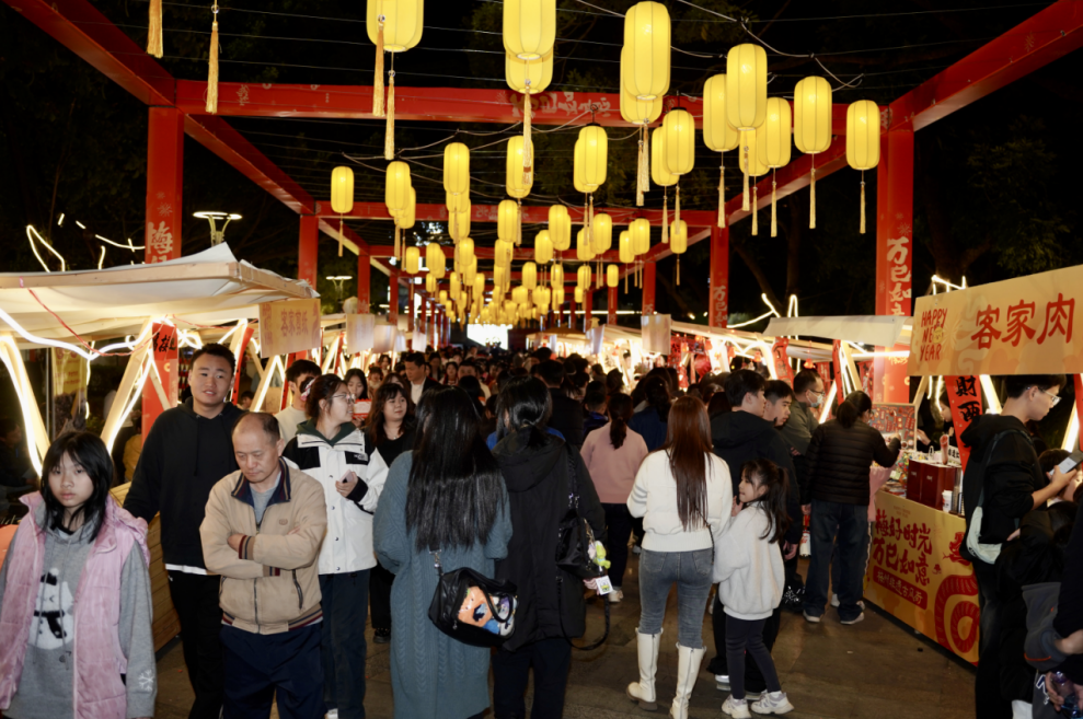 特设老字号区、非遗互动区、文创居品区、优选特产区、自在好意思食区及古风街,是集特质选购、好意思食物尝、非遗体验于一体的新春自在好去向,一站式感受客家圩市的侵扰年味。