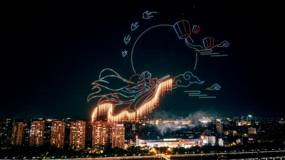 “锦绣梅江·星海腾辉”无东说念主机光影秀
