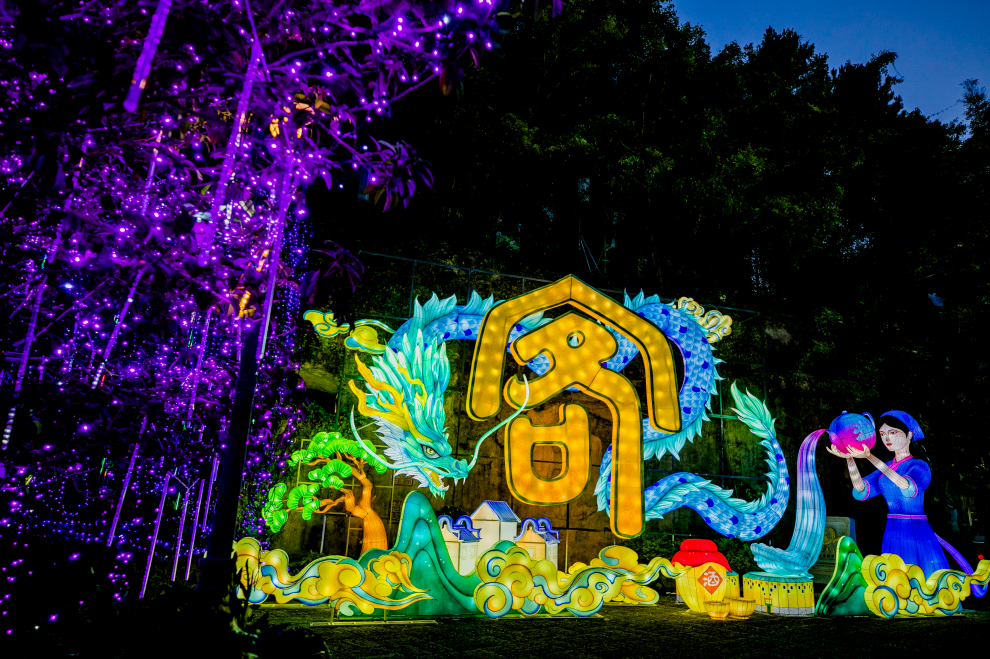 多样千般的灯组林林总总:“喜迎新春”“鲤鱼升龙门”“梅州女神”“龙腾虎跃”“锦鲤通说念”,一场会通深厚客家文化与现代潮水体验的新春盛宴。