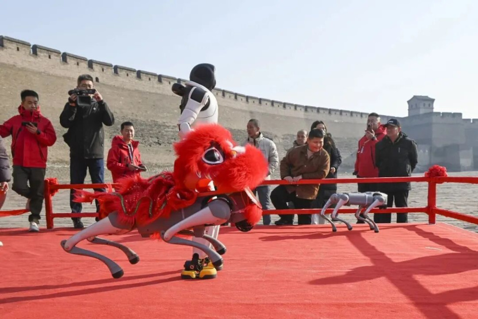 在这里,能看到社火巡游与AI机器东谈主同框。在古城南大街,铿锵的锣饱读声中,舞龙戎行穿梭于灰瓦红灯之间;而在古城的另一隅,仿盼望器东谈主正与旅客互动贺年,演绎技击、醒狮等传统主题。传统社火与当代科技的碰撞,诱惑着稠密旅客藏身。