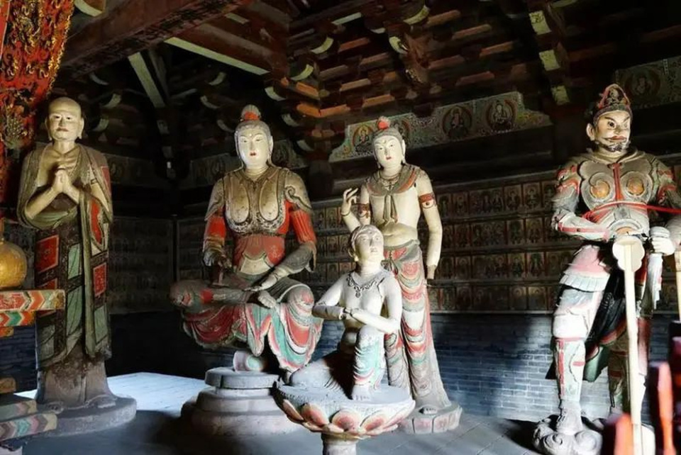 万佛殿亦然寰宇仅存的七处五代建造中保存最为完满的一处,其两进院落布局,交融了从唐至明清的建造元素。寺内天王殿为元代遗构,斗拱硕大古朴;万佛殿则连接着大唐风味,飞檐灵动,开云·体育殿内11尊五代彩塑形骸优好意思、表情当然。