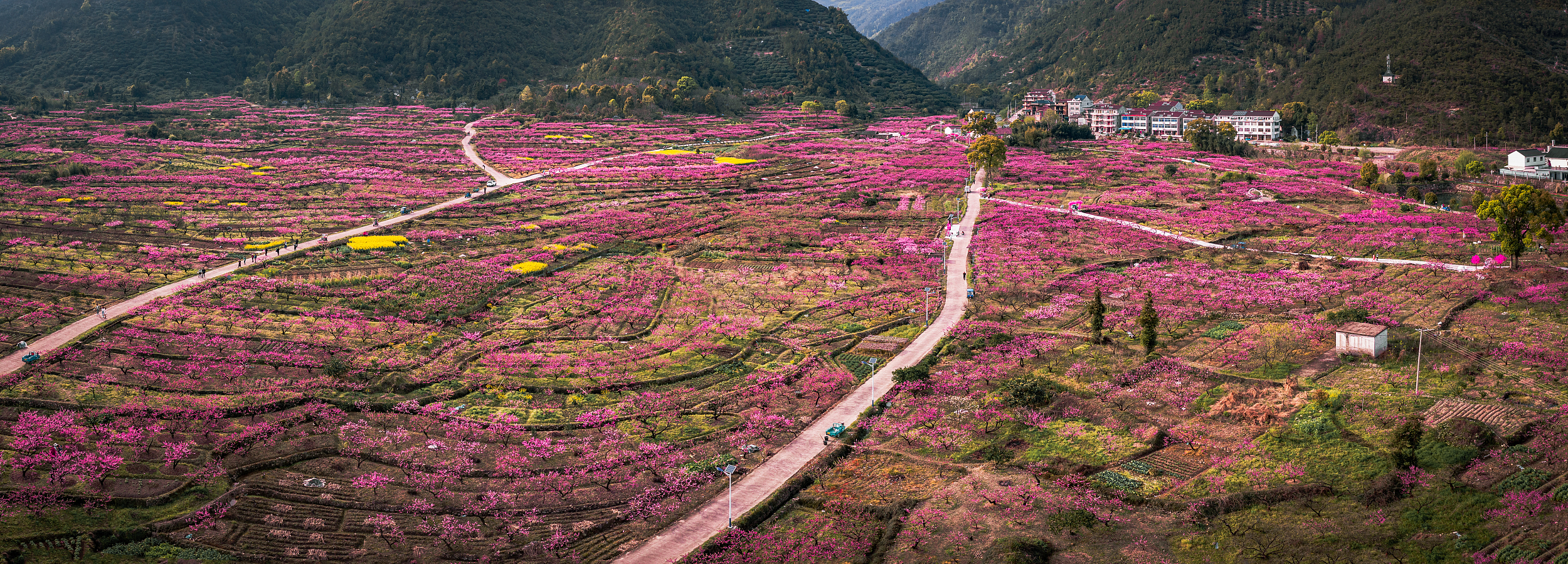 春日龙泉驿,王人备是“花重锦官城”的真实写真。漫山桃花盛放,粉的、红的桃花缀满枝端,绵延数十公里,除了桃花,山间的海棠、玉兰也稀薄绽开,搭配着龙泉驿古朴的山寺、庭院,确切完结了一步一景。