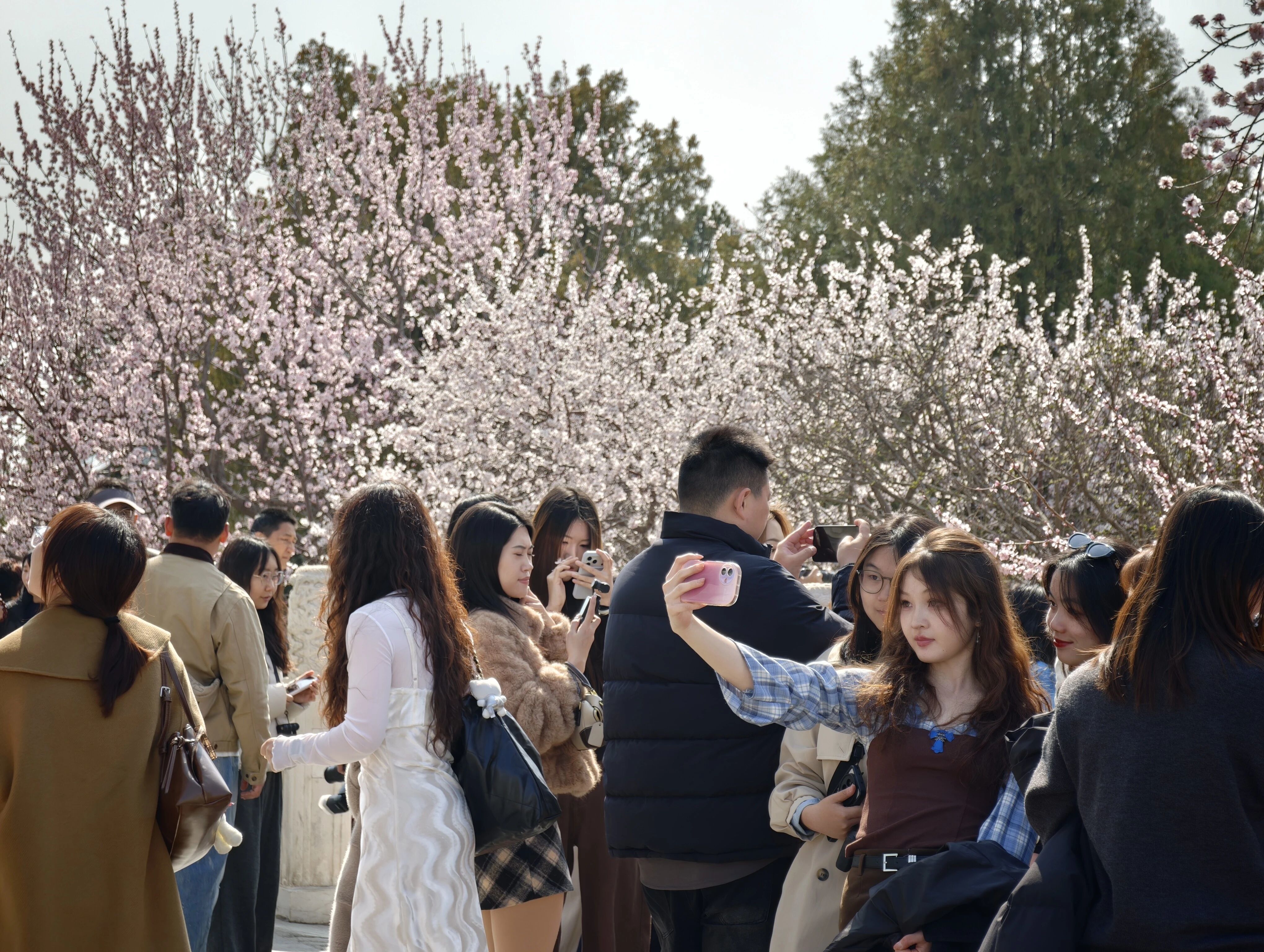 3月15日,旅客在北京北海公园踏青赏景。新华社记者 邢广利 摄