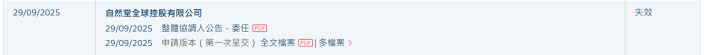 2025年9月29日,当然堂负责向港交所递交上市苦求,华泰海外、瑞银集团出任联席保荐东说念主。2026年3月29日,当然堂IPO苦求文献失效。