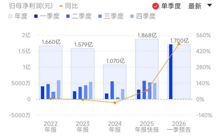 华锐精密(688059.SH)公告称,瞻望2026年第一季度完毕归母净利润为1.50亿元至1.90亿元,同比增长413.28%至550.15%。据此野心其Q1净利瞻望环比增长204%-285%。