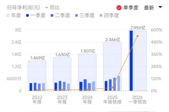 新锐股份(688257.SH)公告称,瞻望2026年第一季度完毕买卖收入为10亿元到11.5亿元,同比增多89.28%到117.68%;归母净利润为2.65亿元到3.25亿元,同比增多473.74%到603.64%。据此野心其Q1净利瞻望环比增长272%-356%。
