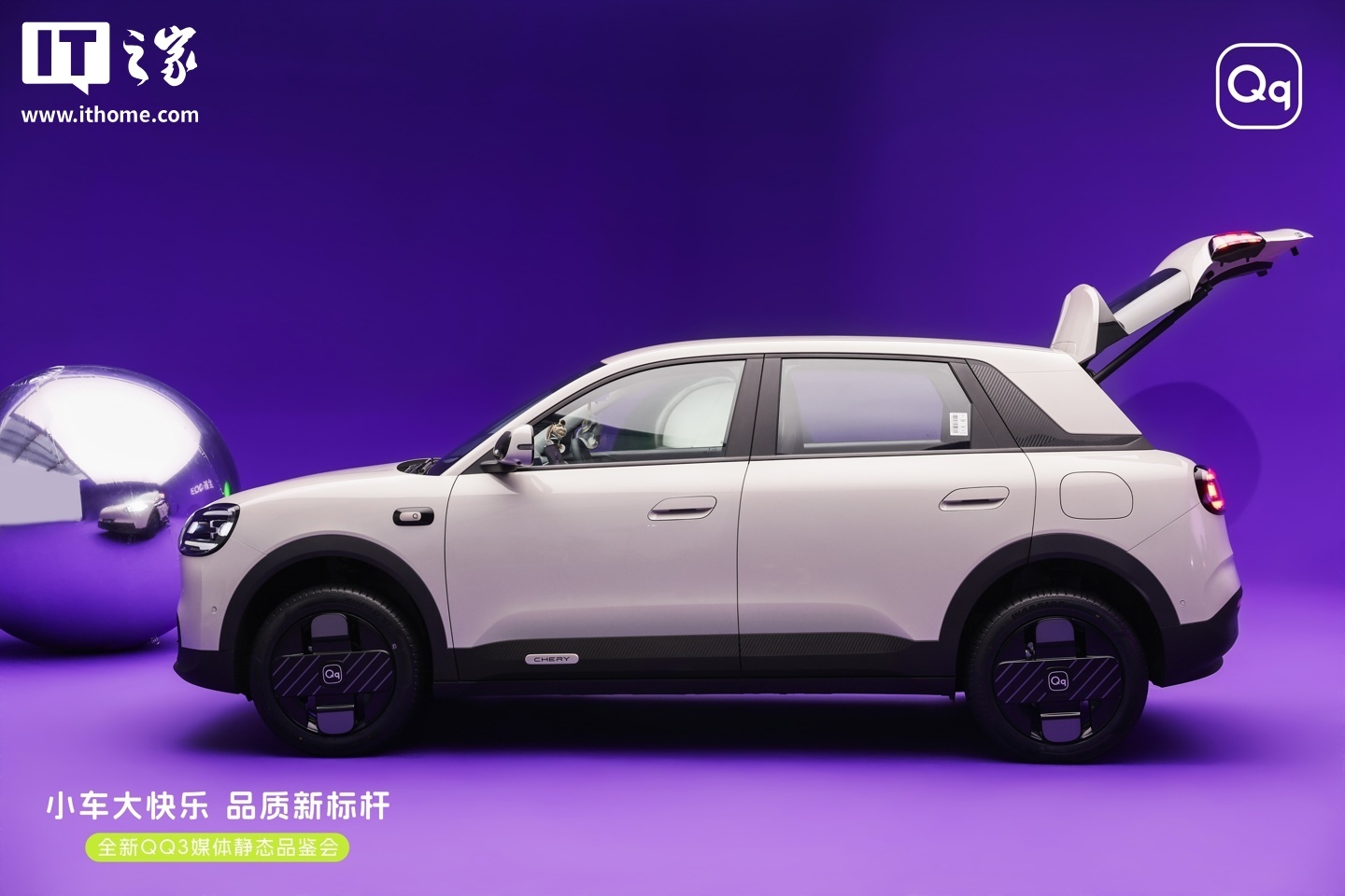 据IT之家了解,奇瑞 QQ3 EV 禁受“智圆行方”的商酌理念,合座造型委宛可儿。前脸配备阻滞式格栅及 Q 型 LED 大灯,下方设有圆角相接式进气口,增添通顺气味。车身侧面禁受半保密式门把手商酌,前后轮眉以玄色饰件点缀,相助 0.643 轴长比、2.39 轮高等到 3 倍轮轴比的车身比例,呈现出先锋的视觉成果。车尾相通禁受委宛灯组商酌,与前脸酿成呼应。新车提供云粉米、翎羽白、月剑银、赤炎红、超逸紫、桃夭粉六种车身心扉。