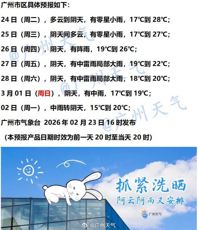 广州天气具体预告: